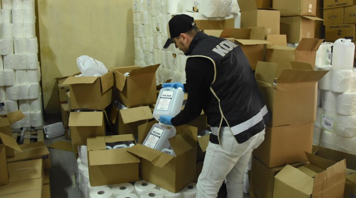Dünyaya yayılan koronavirüsün Türkiye'de de görülmesinin ardından uzmanlar, kişisel temizliğe dikkat edilmesi üzerine uyarılarda bulunmaya başlayınca, vatandaşlar da korunmak için kolonya ve dezenfektan tüketimini artırdı. Bu durumu fırsat bilen kişiler de harekete geçti. İzmir Emniyet Müdürlüğü Kaçakçılık Suçlarıyla Mücadele Şube Müdürlüğü ekipleri, Yeşilova semti 364/6 Sokak'taki depoya, sahte dezenfektan üretildiği iddiası üzerine baskın yaptı. Ekipler, depoda yaptıkları aramada, plastik tank içinde yaklaşık 1 ton sahte dezenfektan ve bunu yapmaya yarayan çok miktarda hammadde ile boş şişe ve bidonlar ele geçirdi. Ayrıca, iş yerindeki diğer ürünlere de gerçek olup olmadığının anlaşılması için el konuldu, 3 kişi gözaltına alındı.