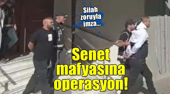 Karşıyaka Cumhuriyet Başsavcılığı koordinesinde, İzmir Emniyet Müdürlüğü Mali Şube Müdürlüğü ekipleri, Karşıyaka ilçesinde bir kişiye silah zoruyla senet imzalatıldığı bilgisi sonrası harekete geçti. Görgü tanıkları ifadeleri ile güvenlik kameraları incelenmesinin ardından tespit edilen 4 şüpheliye yönelik önceki gün eş zamanlı operasyon düzenlendi. Operasyonda şüphelilerin tamamı gözaltına alındı. Şüphelilerin ev, iş yeri ve üzerlerindeki aramalarda 52 boş senet, 1 pompalı tüfek, 100 fişek ve delil niteliği taşıyan çok sayıda belge ele geçirildi. Polisteki işlemlerinin ardından dün akşam adliyeye sevk edilen şüphelilerden Kürşat Çakan ile Anılcan Oto tutuklanırken, F.A. ile O.Ü. adli kontrol şartıyla serbest bırakıldı.