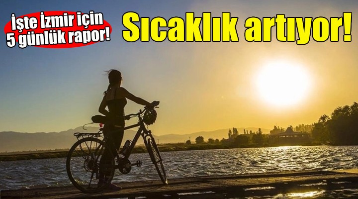 İzmir'de de hava sıcaklıkları artmaya devam edecek. Kentte yeni haftada termometreler 19 dereceyi görecek. Gece sıcaklıkları ise en düşük 6 derece olacak.