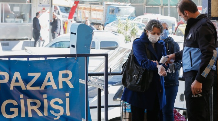 Konak Kaymakamlığı tarafından "pazar yöneticisi" olarak görevlendirilen zabıta amiri Yücel Gürbüz, AA muhabirine, maskesiz kimseyi pazar alanına sokmadıklarını, sigara içilmesine müsaade etmediklerini bildirdi.