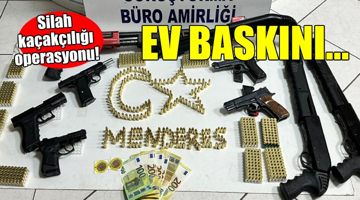 Menderes Suç Önleme ve Soruşturma Büro Amirliği ekipleri, ilçede bir kişinin silah kaçakçılığı yaptığı bilgisini aldı. Bunun üzerine teknik ve fiziki takip başlatan polis, E.Ş.'nin Ordu'dan silah getirdiğini ve sattığını tespit etti. Savcılığın talimatı ile operasyon düzenleyen polis, E.Ş.’yi gözaltına aldı. E.Ş.’nin adresinde yapılan aramada, 3 ruhsatsız tabanca, 2 kurusıkı tabanca, 4 pompalı av tüfeği, 752 tabanca mermisi, 26 tüfek fişeği, 14 kurusıkı tabanca mermisi ve silah ticaretinden elde edildiği değerlendirilen bin 500 avro ile 2 Cumhuriyet altını ele geçirildi. Gözaltına alınan E.Ş. ise Menderes İlçe Emniyet Müdürlüğü'ne götürüldü. E.Ş.'nin işlemleri tamamlandıktan sonra adliyeye sevk edileceği bildirildi.