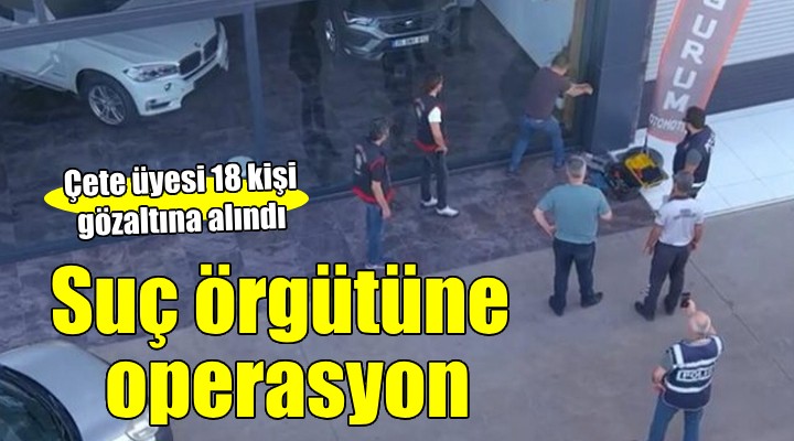 Yaklaşık 6 aylık takibin ardından İzmir Cumhuriyet Başsavcılığı koordinesinde, bu sabah, 29 ikamet ve 3 iş yeri olmak üzere toplam 32 adrese eş zamanlı operasyon düzenlendi. Örgüt lideri Y.S.'nin de aralarında olduğu 18 şüpheli gözaltına alındı. Adreslerdeki aramalarda ise 17 ruhsatsız tabanca ve bunlara ait 133 mermi ele geçirildi. Örgüt yöneticilerinden M.S. ve E.S.'nin, kaçmaya çalışırken, üzerlerinde 1 milyon lirayla yakalanıp gözaltına alındıkları belirtildi. Şüphelilerin işlemlerinin sürdüğü bildirildi.