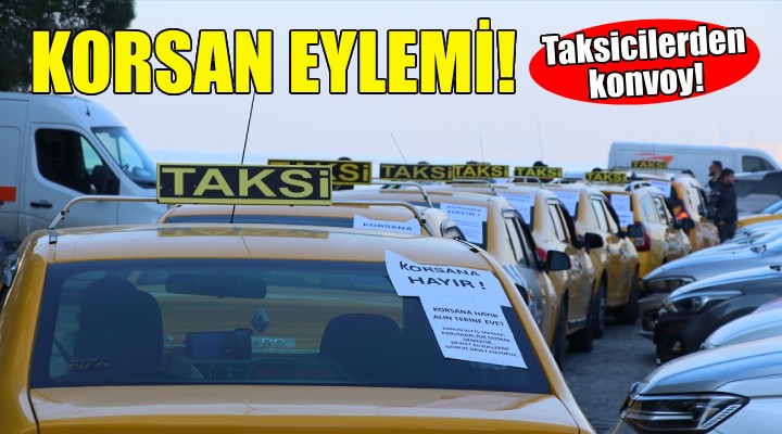 Konak ilçesindeki Alsancak Gar önünde toplanan yaklaşık 50 taksi şoförü, araçlarına "Korsana hayır", "Emek hırsızlığına hayır" yazılı afiş astı.