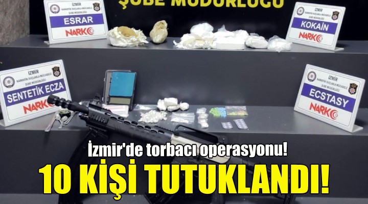 İzmir'de Karabağlar ilçesinde, 'torbacı' olarak tabir edilen sokak satıcılarına yönelik düzenlenen uyuşturucu operasyonunda gözaltına alınan 10 şüpheli, tutuklanıp cezaevine gönderildi.