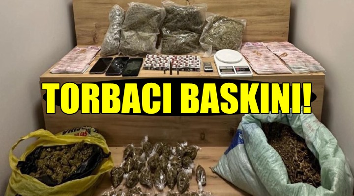 İzmir'in Konak ilçesinde, zehir tacirlerinin uyuşturucu madde satışını önlemek adına yapılan çalışmalar kapsamında, 'Torbacı' olarak tabir edilen sokak satıcılarının zula olarak kullandığı adres tespit edildi. Harekete geçen polis ekipleri, savcılık talimatı ile söz konusu adrese baskın yaptı. Baskında 2 şüpheli gözaltına alınırken, adreste yapılan aramalarda 5 kilo 241 gram esrar maddesi, 187 sentetik ecza hap, 18 uyuşturucu hap, 1 uzun namlulu silah, uyuşturucu madde ticaretinden elde edildiği tahmin edilen 130 bin 730 TL, 600 dolar ve 290 avro para ele geçirildi. Uyuşturucu maddelere yok edilmek üzere el konulurken, gözaltına alınan S.Ç.(44) ve M.B.(36) emniyete götürüldü. Emniyetteki işlemleri tamamlanan 2 şüpheli adliyeye sevk edildi. Mahkemeye çıkartılan S.Ç. ve M.B. tutuklandı.