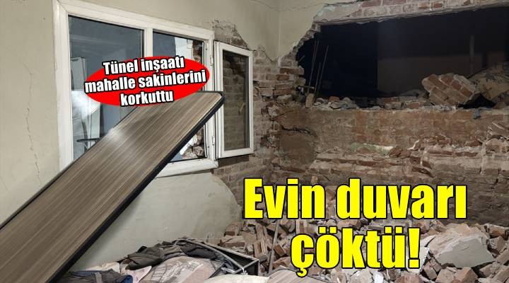 Yapım çalışmalarının sürdüğü tünel inşaatı nedeniyle Konak ilçesi Atamer Mahallesi'nde Ersen (31) ve Fahriye Kılıç (28) çiftinin evinin duvarı yıkıldı.