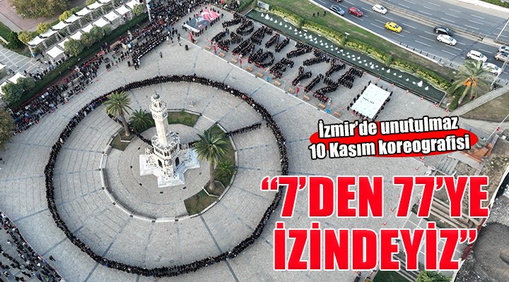 İzmir Büyükşehir Belediyesi, ulu önder Mustafa Kemal Atatürk’ün ölümünün 85’inci yıldönümünde saatler 9.05’i gösterirken belediye çalışanlarının yer aldığı etkileyici bir görsel etkinliğe imza attı. Konak Atatürk Meydanı’nda 1881 kişi “7’den 77’ye İzindeyiz” yazısı ve 9’u 5 geçe duran saat figürü oluşturuldu.