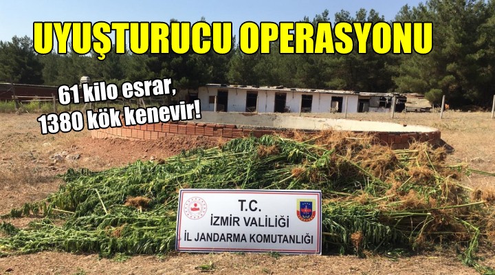 İl Jandarma Komutanlığı ekipleri, uyuşturucu kaçakçılığı ve yasa dışı Hint keneviri ekimiyle mücadele çalışmaları kapsamında, Bayındır ilçesinin Zeytinova ve Fatih, Buca ilçesinin Belenbaşı, Beydağ ilçesinin Karaoba mahallelerinde arama yaptı. Aramalarda toplam 61 kilo 91 gram esrar ile 1380 kök Hint keneviri ve ruhsatsız olduğu belirtilen 5 av tüfeği ele geçirildi. Olayla ilgili 2 kişi gözaltına alındı.