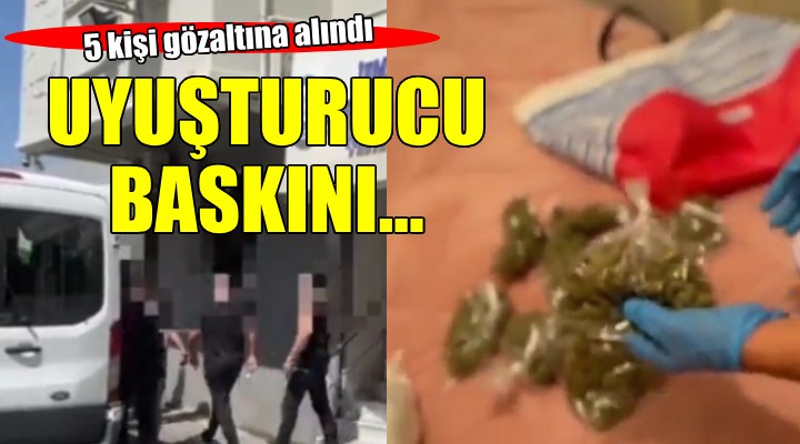 SONKALEİZMİR-İzmir Cumhuriyet Başsavcılığı koordinesinde İl Emniyet Müdürlüğü Narkotik Suçlarla Mücadele Şube Müdürlüğü ve İstihbarat Şube Müdürlüğü ekipleri, Konak'ta bir eve uyuşturucu operasyonu düzenledi.