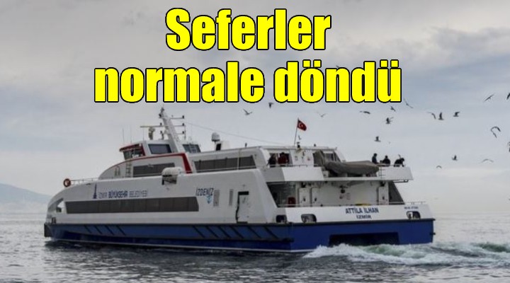 İZDENİZ AŞ'den yapılan açıklamada, özellikle Bostanlı ve Karşıyaka iskelelerinde yaşanan olumsuz hava ve deniz koşulları sebebiyle iptal edilen arabalı vapur ve yolcu gemisi seferlerinin tekrar başladığı belirtildi. Açıklama şöyle: