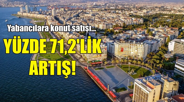 İzmir’de Haziran ayında yabancılara yapılan konut satışı bir önceki yılın aynı ayına göre yüzde 71,2 oranında artarak 125 oldu. Haziran ayında İzmir’de toplam konut satışları içinde yabancılara yapılan konut satışının payı yüzde 1,5 oldu. Yabancılara yapılan konut satışlarında ilk sırayı 3 bin 906 konut satışı ile İstanbul aldı. İstanbul'u sırasıyla 2 bin 534 konut satışı ile Antalya ve 428 konut satışı ile Mersin izledi.