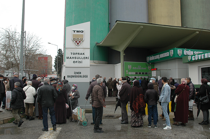 SONKALEİZMİR (ÖZEL)-Toprak Mahsulleri Ofisi'nin (TMO) İzmir Alsancak'taki satış mağazası önünde bugün sabah saatlerinden itibaren metrelerce yağ kuyrukları oluştu. Yaklaşık 2 saat boyunca kuyrukta bekleyen, mağazada kalmadığı için yağ alamadan ayrılmak zorunda kalan yüzlerce yurttaş hükümete tepki gösterdi.