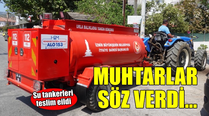 İzmir Büyükşehir Belediyesi, orman yangınlarına hızla müdahale edilmesini sağlamak ve ormanları korumak için orman köylerine 40 tanker teslim etti. Son parti tankerler Urla’nın Zeytinler ve Balıklıova ile Çeşme’nin Ildır ve Şehit Mehmet mahallelerine gelen su tankerleri, muhtarlara teslim edildi. İzmir Büyükşehir Belediye Başkanı Cemil Tugay’ın geçtiğimiz günlerde İnciraltı Kent Ormanı’nda gerçekleştirilen tanker teslim törenindeki konuşmasına dikkat çeken muhtarlar, “Başkanımız ormanları korumak için her vatandaşın yangınlara karşı birer asker olmasını dilemişti. Bizler ormanların askerleriyiz, tankerlerimizle hızlı müdahaleye hazırız” dedi.