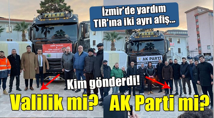 SONKALEİZMİR-Muğla Valiliği yetkililerinin, Bodrum Belediyesi'nin depremzedelere gönderdiği TIR'ın önüne "Muğla Valiliği" yazılı afiş asmasının ardından benzer bir olay da İzmir'de yaşandı.