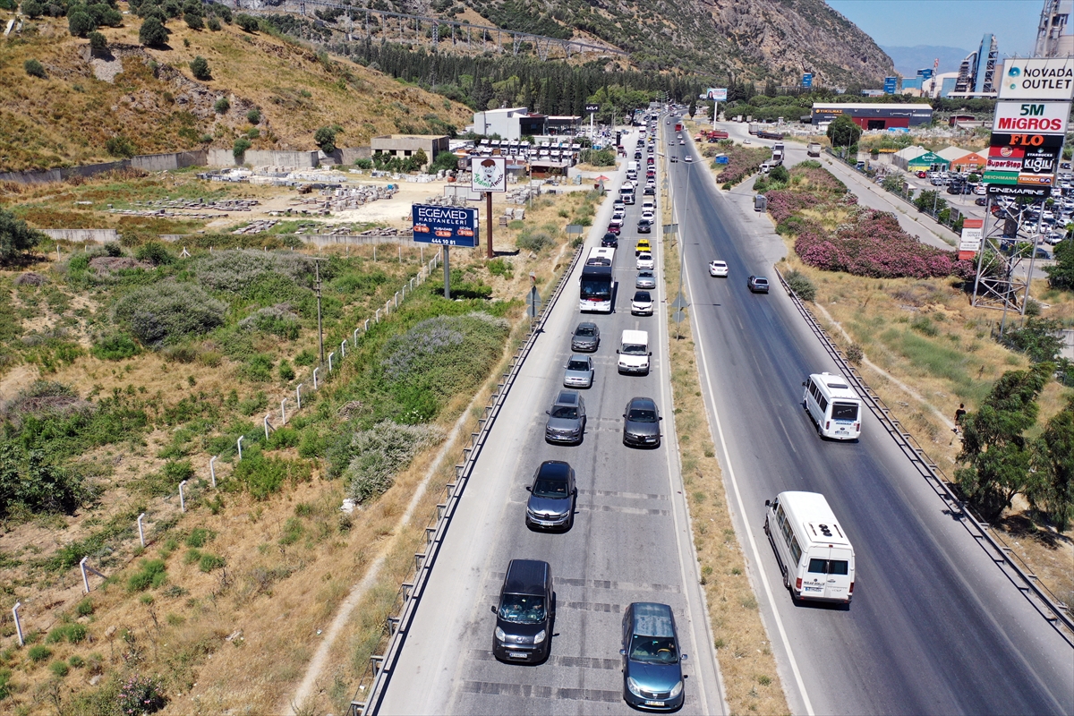 İzmir'de, kent merkezini Çeşme, Urla, Seferihisar, Didim, Kuşadası gibi tatil merkezlerine bağlayan çevre yolunda trafik yoğunluğu yaşandı.