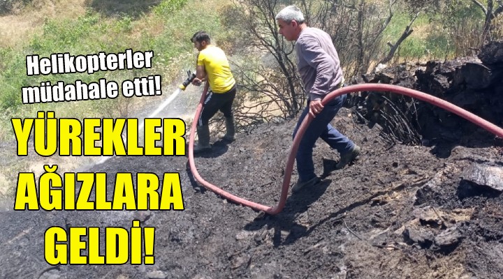 Yangına, İzmir Orman Bölge Müdürlüğüne bağlı 2 helikopter ve 8 arazözle müdahale edildi. Yaklaşık 3 hektarlık alanda etkili olan yangın kontrol altına alındı.