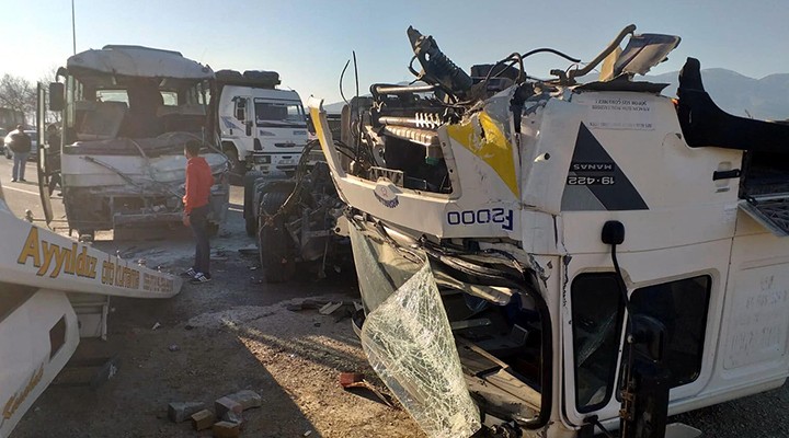 Kaza, saat 15.30 sıralarında, Ankara Asfaltı Turgutlu-İzmir yolu Armutlu Kavşağı'nda meydana geldi. İzmir'den Turgutlu yönüne giden tavuk kesimhanesine işçi taşıyan Serkan Dinçtürk'ün kullandığı 45 J 6319 plakalı servis midibüsü, Fayık Kaya yönetimindeki 35 PPJ 57 plakalı TIR ve Burhan Ahmet Koyuncu'nun kullandığı 09 FV 207 plakalı TIR ile çarpıştı. Zincirleme kazada 3 sürücü ile midibüsteki yolculardan Şaban Göz (36), Veysel Çetinkaya (49), Nevzat Karsavuran (48), Mesude Şat (52), Erol Gültekin (48), Seher Kahraman (30), Ahmet Tanrıkulu (64), Mevlüt Akalın (40), Ahmet Göz'ün (18) ve 2 işçi daha yaralandı. Durumu ağır olan 2 yaralının isimleri henüz tespit edilemedi. Yaralılar Manisa'nın Turgutlu ilçesi Devlet Hastanesi'ne kaldırılıp, tedaviye alındı.
