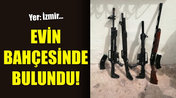 Evin bahçesindeki aramada, 4 pompalı tüfek ve buna ait çok sayıda kartuş ele geçirildi.