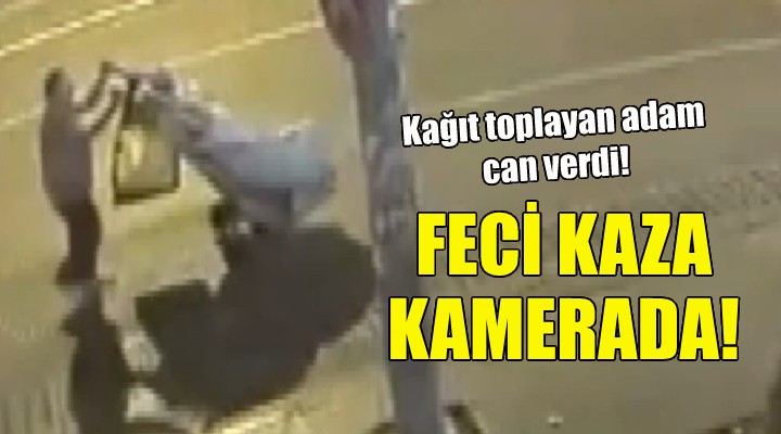 Kamera kayıtlarında yol kenarından yürüyen kağıt toplayıcısına aynı istikamette giden ticari taksinin arkadan çarptığı görülüyor.