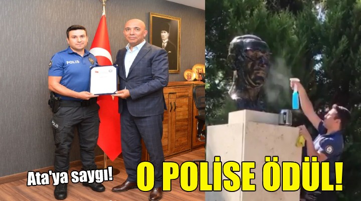 Buca Emniyet Müdürlüğü kadrosunda görevli bir polis memuru tozlandığını farkettiği Atatürk büstünü temizledi. İzmir İl Emniyet Müdürü Mehmet Şahne polis memurunu makamında kabul ederek teşekkür plaketi verdi.