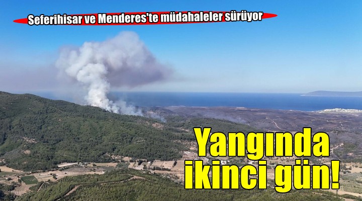 Menderes ve Seferihisar ilçeleri arasında ormanda çıkan yangın, gece boyunca da devam etti. Orman işçileri, itfaiye ve belediye ekipleri alevlere karadan müdahale ederken, rüzgarın gece de etkili olduğu bölgede 20 ev zarar gördü. Günün ilk ışıklarıyla birlikte bölgede havadan müdahale de başladı. Yangına, Orman Genel Müdürlüğü'ne ait 4 uçak, 14 helikopter, 106 arazöz, 14 su ikmal ve 9 dozer ve çok sayıda orman işçisiyle müdahale sürüyor.