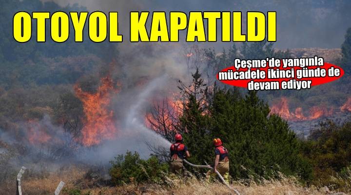 Saatteki hızı yer yer 80 kilometreyi aşan rüzgar, çalışmaları zorlaştırdı. Havanın kararması nedeniyle helikopter ve uçakla müdahaleye ara verilirken, gece boyu söndürme çalışmaları karadan devam etti. Dün akşam saatlerinde İzmir-Çeşme kara yolu da ulaşıma kapatıldı. Kara yolundan yalnızca görevli araçların geçişine izin veriliyor.