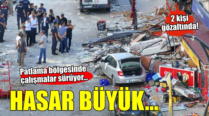 Görevlendirilen iki müfettiş tarafından yürütülen soruşturma ise sürüyor. Patlamanın ardından gözaltına alınan sanayi tüpünü değiştirdiği öne sürülen tüpçü M.K. ile Menderes ilçesinde yakalanan işletme sahibi G.K.'nin ise jandarmadaki işlemlerinin sürdüğü bildirildi. AFAD ekipleri ile jandarma ekiplerinin de olay yerindeki çalışmaları sürüyor.