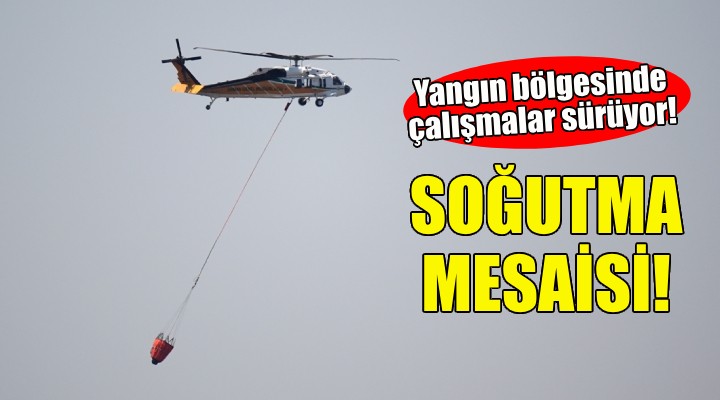 İnsansız hava araçları ve yangın yönetim uçağıyla da gözetlenen bölgede kritik bölgelere su dökülerek soğutma çalışması yapılıyor.