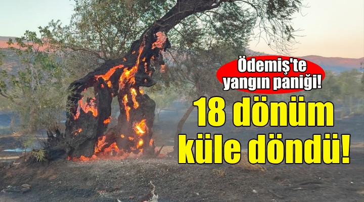 İzmir'in Ödemiş ilçesinde zeytin ve incir ağaçlarının bulunduğu 18 dönümlük bahçe yandı, bazı arı kovanları zarar gördü.