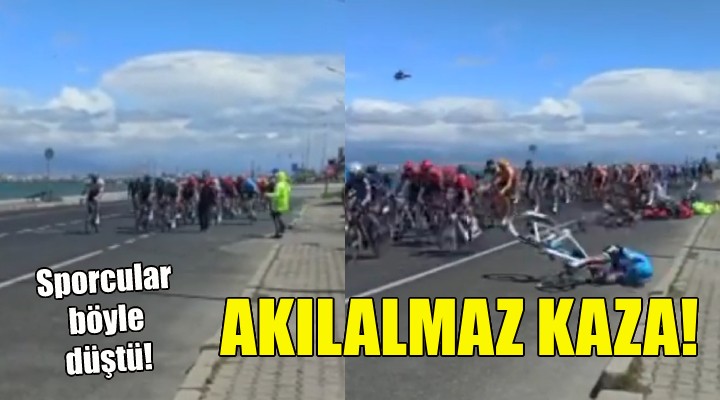 Büyük çekişmeye sahne olan yarışma sırasında bir kişinin trafiğe kapalı parkura girmesi nedeniyle kaza yaşandı. Görevlilerin uyarmaya çalıştığı şahsa çarpan bisiklet sporcuları bir anda kendilerini yerde buldu. Şahıs ve onu yoldan çekmeye çalışan görevli de yaralandı.
