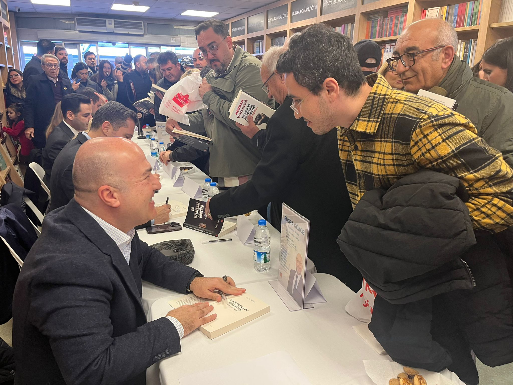 Türkü ERBİL/SONKALEİZMİR- İstanbul Cumhuriyet Başsavcılığı tarafından İstanbul Büyükşehir Belediyesi'ne başlatılan soruşturması kapsamında tutuklanarak Silivri Cezaevine gönderilen İzmir Büyükşehir Belediyesi eski Genel Sekreteri ve İstanbul Planlama Ajansı (İPA) Başkanı Buğra Gökçe'nin cezaevinde yazdığı "22 Metrekare Gökyüzü" kitabı için İzmir'de imza günü düzenlendi.