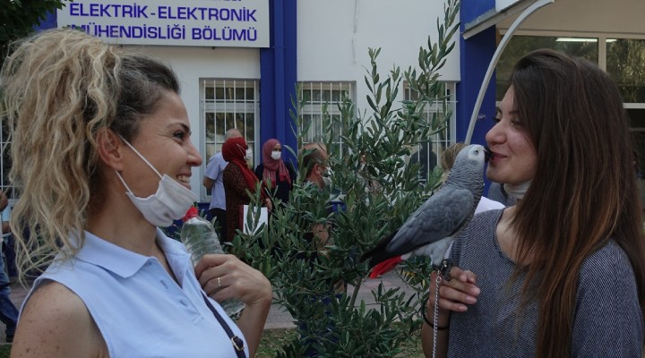 Yükseköğretim Kurumları Sınavı'nın ilk oturumuna girecek öğrencilere yeni tip koronavirüs (Kovid-19) tedbirleri kapsamında maske ve dezenfektan verildi. Öğrenciler daha sonra kimlik ve sınav giriş belgeleri kontrol edilerek sınava alındı. Ege Üniversitesi Mühendislik Fakültesinde sınava giren öğrencilere velileri ile yakınları moral verdi. Aleyna Üzer ailesi ve 7 yaşındaki Afrika gri papağanı ile okul girişine geldi. Üzer, sevimli hareketleriyle çevredekilerin ilgi odağı olmayı başaran "Paşa"nın kendisine her sınavında şans getirdiğini belirterek, YKS'de de papağanının kendisine uğur getireceğine inandığını ifade etti.