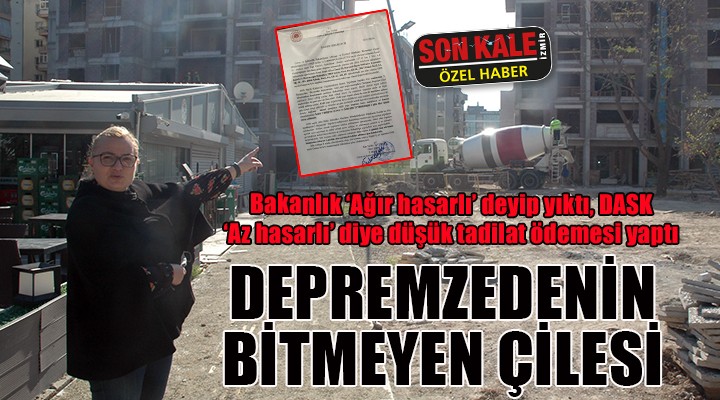 "Bakanlığın ağır hasarlı tebligatı sonrası DASK ekipleri geldi. Binadaki daireleri inceledikten sonra en son benim daireme geldiler. Dairem berbat durumdaydı. Banyo kapısı yan dönmüş, mutfak dolapları kaymış, duvarlar çatlamış. Duvarlardan içeriye güneş ışığı sızıyordu. Buna rağmen DASK eksperi bize tadilat parası uygun görmüş. Biz bunu öğrendiğimizde binamız tamamen yıkılmıştı. 1 Aralık'ta Çevre Şehircilik Bakanlığı binamızı yıktı sonra da 'Ya pardon, sizin binanız aslında az hasarlıymış, biz tebligatı size yanlış yapmışız' diye sözlü olarak bildirim yaptılar. DASK'ın yıkılmış olan bina için verdiği 13 bin lira ile olmayan binanın neresini tamir ettirebilirim. 15-20 kez, ayrı ayrı maillerle ve yazılı başvurular yaptık. En son avukatımız yasal bir başvuru yaptı. Tamamına ret cevabı verdiler. Bize, "DASK olarak Hazine ve Maliye Bakanlığı'na bağlıyız. Binanızın yıkım kararını Çevre Şehircilik Bakanlığı verdi, biz o kararı tanımıyoruz" diyorlar. Devlet aynı devlet. Devletin bir kurumunun aldığı kararı diğeri tanımıyor. Onların arasındaki çelişki nedeniyle vatandaş mağdur oluyor. İzmir olarak devletiyle mahkemelik olmayı seven bir halk değiliz. Maalesef şu an DASK ile mahkemeliğiz. 17 yıldır düzenli DASK poliçesi yaptıran biriyim. DASK televizyonlarda ünlülerle boy boy reklamlar yaptırıyor. Keşke o reklamlara harcadığı paraları poliçesini yaptırmış sigortalılarına vermiş olsaydı. Artık mecbur olmadıkça sigorta yaptırmam diye düşünüyorum."