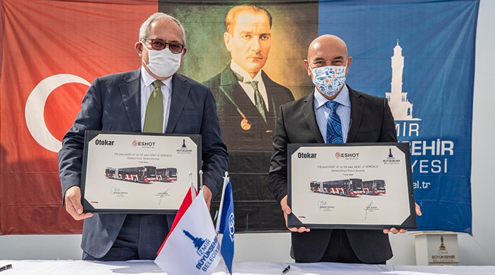 Son 10 ayda toplam 83 yeni ve yerli otobüsü yurttaşların hizmetine sunan İzmir Büyükşehir Belediyesi, 170’i solo, 134’ü körüklü olmak üzere toplam 304 otobüs daha aldı. 89’uncu İzmir Enternasyonal Fuarı’ndaki İzmir Büyükşehir Belediyesi Standı’nda bugün yeni otobüsler için imzalar atıldı. Törende İzmir Büyükşehir Belediye Başkanı Tunç Soyer ve Otokar Otobüs Firması Genel Müdürü Serdar Görgüç, kentte toplu ulaşımın kalitesini ve konforunu artıracak 304 otobüsü İzmirlilere müjdelemek üzere buluştu. Törene İzmir Büyükşehir Belediye Başkan Vekili Mustafa Özuslu, İzmir Büyükşehir Belediyesi Genel Sekreteri Dr. Buğra Gökçe, CHP Parti Meclis Üyesi (PM) Rıfat Nalbantoğlu, CHP İzmir Milletvekillerinden Kani Beko, Murat Bakan, Özcan Purçu, ilçe b elediye başkanları, DİSK temsilcileri ve davetliler katıldı.