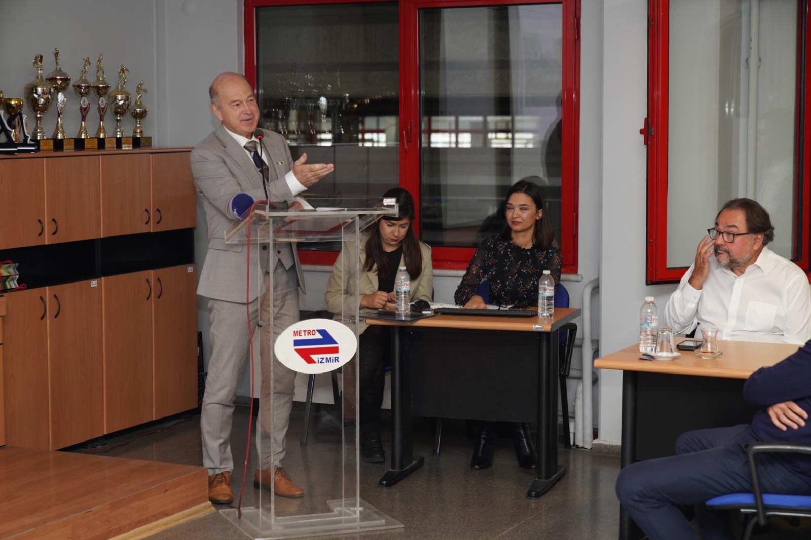 Programda İzmir Metro projesinin ilk etabına ilişkin video ve reklam filmlerine de yer verildi. Arıoğlu ve ABB temsilcisi Lars-Olof Nisson’a 25 yıl önce İzmir Metrosu’na biniş için kullanılan ilk jetonlardan oluşan ve şirketin 25. yılı onuruna el yapımı olarak seramikten üretilen 100 parçalık bir koleksiyonu barındıran plaket takdim edildi. Atölye ve Trafik Kontrol Merkezi gezisi ile devam eden program; Konak, Halkapınar, Çankaya, Üçyol, Bornova, Narlıdere Kaymakamlık’ın da aralarında bulunduğu 6 istasyonun ziyaret edilmesi ile sona erdi.