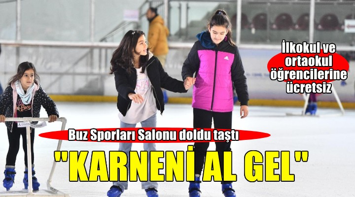 İzmir Büyükşehir Belediyesi, Bornova'daki Âşık Veysel Rekreasyon Alanı’nda yer alan Buz Sporları Salonu’ndaki halk seanslarını yarıyıl tatili boyunca ilkokul ve ortaokul öğrencilerine ücretsiz yaptı. “Karneni al gel” sloganıyla düzenlenen etkinlik kapsamında İzmirli minikler karne hediyesi olarak buz pateni yaparak tatil coşkusunu doyasıya yaşadı. Buz pisti öğrencilerle doldu taştı.