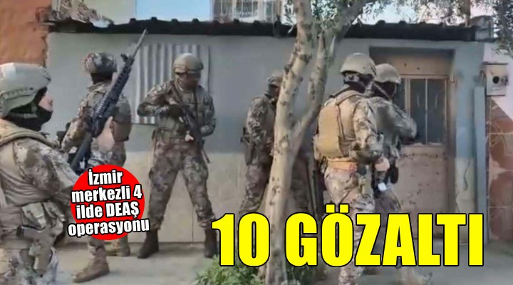 İzmir Cumhuriyet Başsavcılığı koordinesinde, İl Jandarma Komutanlığı Terörle Mücadele (TEM) Şube Müdürlüğü ekipleri, DEAŞ terör örgütünün finansmanına yönelik İzmir merkezli 4 ilde operasyon düzenledi. Operasyonda, 12 şüpheliden 10'u gözaltına alınırken, 1 şüphelinin yurt dışında, 1 şüphelinin ise firari olduğu belirlendi.