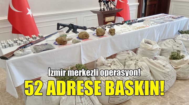 İzmir İl Emniyet Müdürlüğü'ne bağlı Narkotik Suçlarla Mücadele Şube Müdürlüğü ekipleri, bugün sabah saatlerinde İzmir merkezli olarak İstanbul, Mersin, Elazığ, Muğla illerindeki 52 adreste uyuşturucu operasyonları düzenledi. Operasyonlarda, 33 kişi gözaltına alınırken, şüphelilerin emniyetteki işlemlerinin sürdüğü bildirildi.