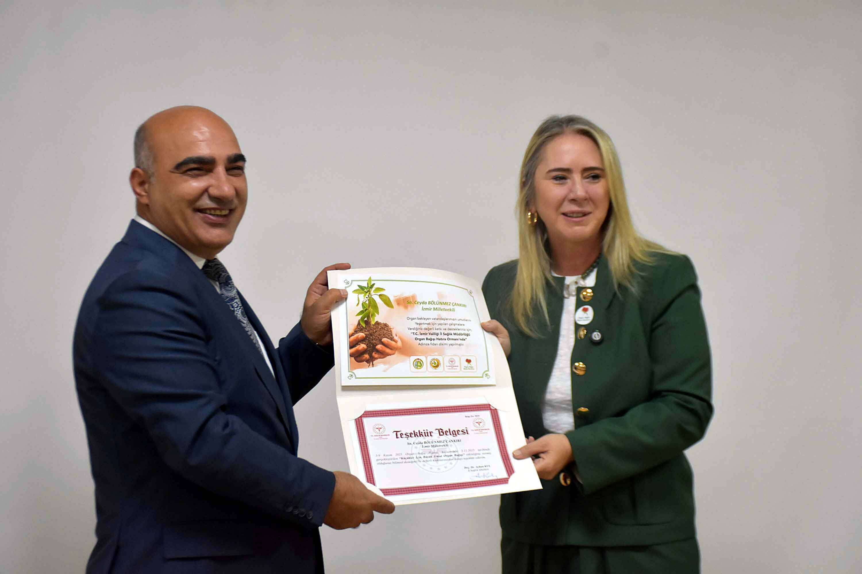 AK Parti İzmir Milletvekili Ceyda Bölünmez Çankırı ise "Ben de iki evladın annesi olarak rahatlıkla söyleyebilirim ki insan evladını her zaman bir organa benzetir. Kalbine, ciğerine, nefesine. Çünkü o giderse sanki kendi yaşamı eksilir. Çünkü bir anne çocuğu nefes almakta zorlandığında kendi nefesini vermek ister. Kalbi duracak olsa kendi kalbini çıkarıp, ona koymak ister. Organ bağışı tam da bu duygunun görünür halidir" diye konuştu. Son 23 yılda Sağlık Bakanlığı'nın yürüttüğü farkındalık kampanyaları ve donör kayıt sistemleri ile Türkiye'nin bu alanda dünyada örnek bir ivme yakaladığını kaydeden Çankırı, şehir hastanelerinde imkanların çok büyüdüğüne dikkat çekip, "Burada bir tarafta zamanla yarışan doktorlar, diğer yanda sabırla zamana tutunan aileler var. Bugün Türkiye sağlıkta dönüşümle birlikte bu insani zinciri çok güçlendirdi. Artık nakil ameliyatları bir mucize değil" dedi.