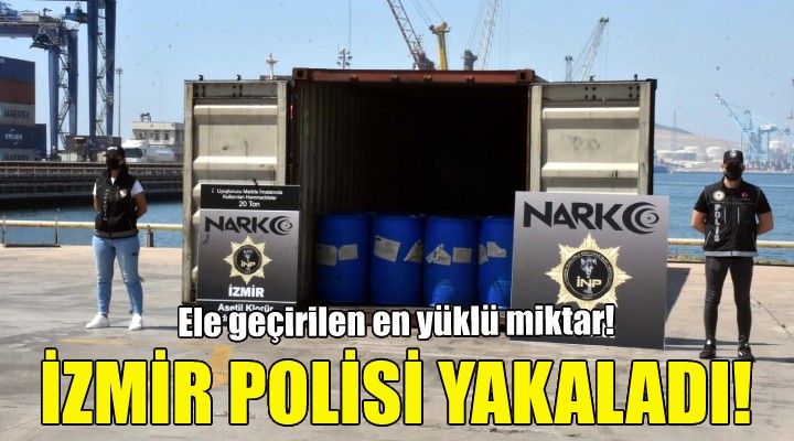 Çin'den, uyuşturucu madde yapımında kullanılan bir kimyasalın deniz yoluyla İzmir'in Aliağa Limanı'na gönderileceği bilgisi üzerine Aliağa Cumhuriyet Başsavcılı'ğının koordinesinde Narkotik Suçlarla Mücadele Şube Müdürlüğü, İstihbarat Şube Müdürlüğü, Kaçacıkcılık Suçlarıyla Mücadele Şube Müdürlüğü ve Aliağa Gümrük Muhafaza Müdürlüğü ekiplerinin katılımıyla operasyon düzenlendi. Ekipler, evraklarında boya, reçine, parfüm ve ilaçlarda kullanılan 'benzil klorür' maddesi taşındığı görünen konteynerleri incelemeye aldı. İncelemede, 120 varil içerisinde, uyuşturucu madde yapımında kullanılan 26 ton 160 kilogram asetil klorür hidrolik asit maddesi ele geçirildi.