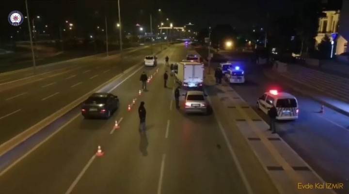 İl Emniyet Müdürlüğü'ne bağlı polis ekipleri, tüm yurt genelinde cuma günü 21.00'den itibaren başlayan 56 saatlik sokağa çıkma kısıtlamasının ardından kentin işlek cadde, sokak ve meydanlarında denetim yaptı. Drone ile saniye saniye görüntülenen denetimler, sosyal medyada paylaşıldı. İzmir Emniyet Müdürlüğü'nce sosyal medyadan yapılan paylaşımda, "Biz sizin için varız. Sağlıklı günler için evde kal İzmir" ifadelerini kullandı.
