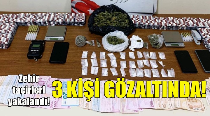 Takip sonrası şüphelilerin adreslerine operasyon yapıldı. Polisin aramasında 2 hassas terazi, 300 gram esrar, 26 gram kokain, 1570 sentetik uyuşturucu hap ve uyuşturucu madde satışından elde edildiği tahmin edilen 27 bin 300 TL, 20 euro ve 6 dolar ele geçirildi.