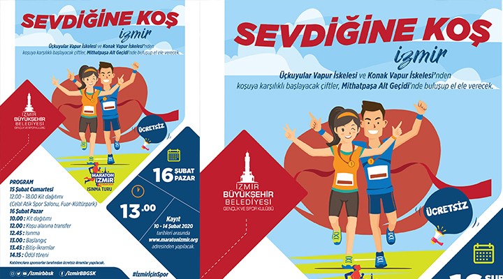 Sevgililer Günü’den iki gün sonra 16 Şubat Pazar günü düzenlenecek koşu, iki farklı noktadan saat 13.00’te karşılıklı start alacak. Konak Vapur İskelesi ve Üçkuyular Vapur İskelesi önünden koşuya başlayacak çiftler, Mithatpaşa Üst Geçidi’nde buluşup el ele verip parkuru bu şekilde tamamlayacak.