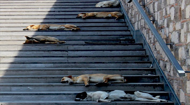 İzmir'de tarihi Kemeraltı Çarşısı'nda bulunan Balıkçılar Meydanı'nda 6 sokak köpeği sıcak havanın etkisinden kurtulmak için bir yarısı güneş alan merdivenin gölge olan kısmında her biri bir basamağa yatarak güneşten korundu. İzmir Meteoroloji 2'nci Bölge Müdürlüğü'nden yapılan açıklamaya göre bu hafta hava sıcaklığı ortalama 26- 27 derece seyrinde devam ederken, ay boyunca kuzey kesimlerde sıcaklık 30- 31 derecelere kadar çıkacak. Fakat İzmir'in merkezi ilçelerinde hafta sonu yağış bekleniyor.