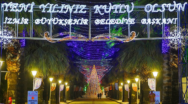 İzmir yeni yıla hazır. İzmir Büyükşehir Belediyesi, 2020’nin daha aydınlık ve umut dolu geçmesi dileğiyle kentin merkezindeki cadde sokak ve meydanları rengarenk ışıklarla süsledi. Konak, Alsancak, Kordon boyu, Ali Çetin Kaya Bulvarı, Kıbrıs Şehitleri, Kültürpark, Lozan, Basmane, Bornova Meydan, Gündoğdu ve Cumhuriyet Meydanı direk motifleri ve ışıklı taklarla süslendi. Yurttaşlar aydınlatmaların önünde bol bol hatıra fotoğrafı çektirdi.