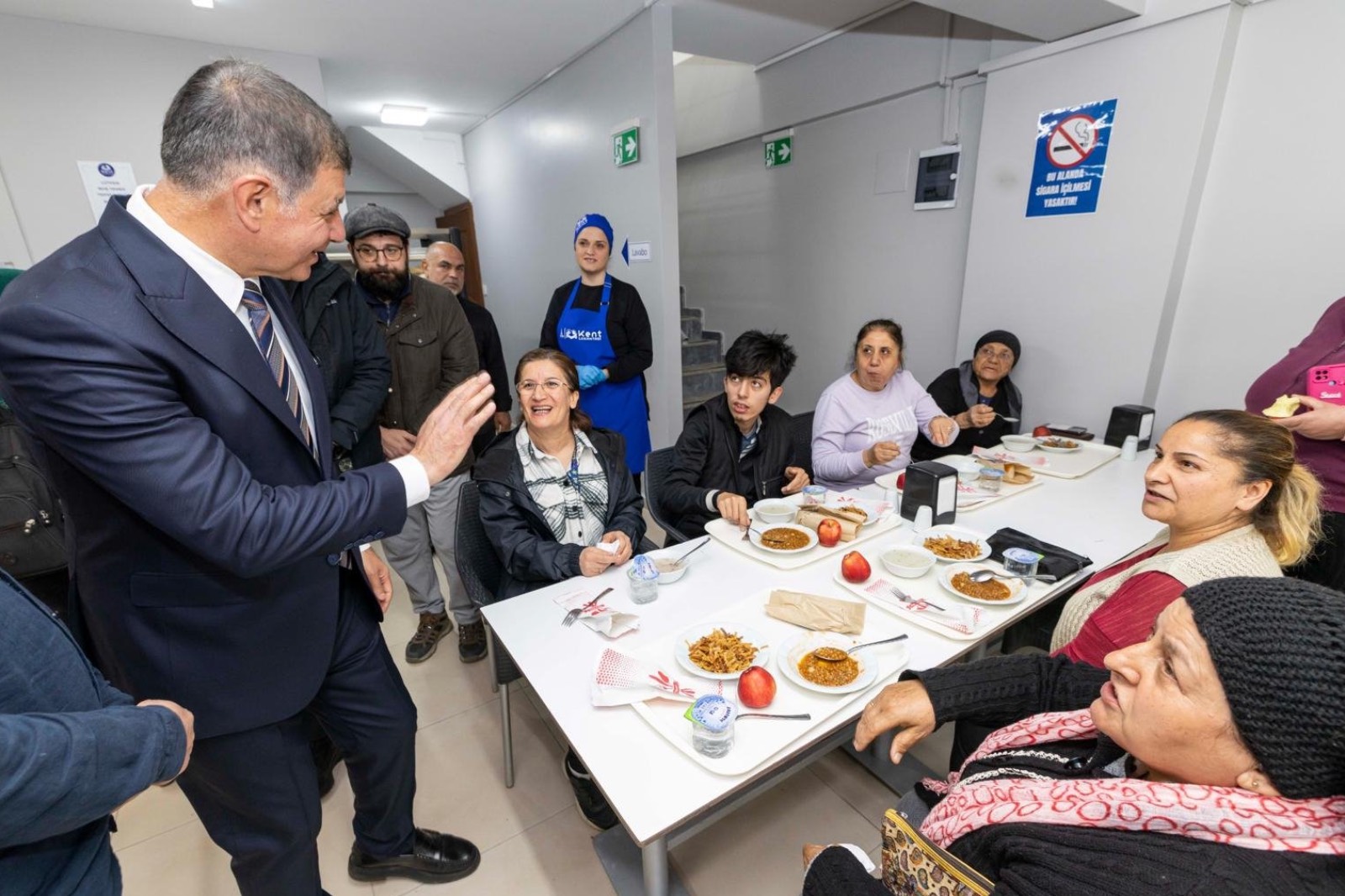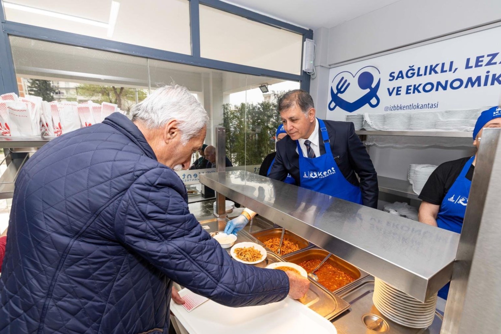 İzmir Büyükşehir Belediye Başkanı Dr. Cemil Tugay’ın seçim vaatleri arasında yer alan ve göreve gelir gelmez açılmasına öncülük ettiği Kent Lokantaları, halkı sağlıklı, güvenilir ve ekonomik gıdayla buluşturmaya devam ediyor. Dört çeşit yemeğin 50 liradan sunulduğu Kent Lokantaları’nın altıncısı Yamanlar’da açıldı. Dar gelirli yurttaşların yaşadığı bir bölgede hizmete açılan şubede yemeğin fiyatı 25 TL olarak belirlendi. Başkan Dr. Cemil Tugay Yamanlar Kent Lokantası’nı ziyaret ederek tezgaha geçti ve önlük giyerek yemek servis etti. Bölge halkı kısa bir süre önce başlatılan hizmetten dolayı teşekkürlerini sunarak memnuniyetini dile getirdi.