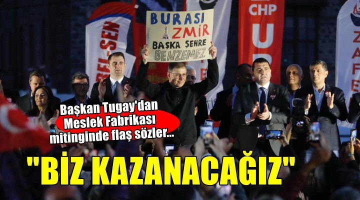 Meslek Fabrikası binasının 12 Eylül askeri darbe dönemi Devlet Güvenlik Mahkemeleri olarak kullanıldığını hatırlatan Tugay, “Ülkemizin tarihinde yaşattığı kötü şeylerle hatırlanır. Aranızda orada yargılanmışlar bile vardır. Bu binayı izmir hafızasında kötü yer olan bu binayı harap halde alıp 2007 yılında restore etmeye başlıyor İZBB bunun için dünya kadar para harcıyor. O paralar İzmir halkının parası. O dönemde kaç para harcandı, o dönemin başkanı bilir. Hepimizin gururu Aziz Kocaoğlu Başkan’ım…” dedi.