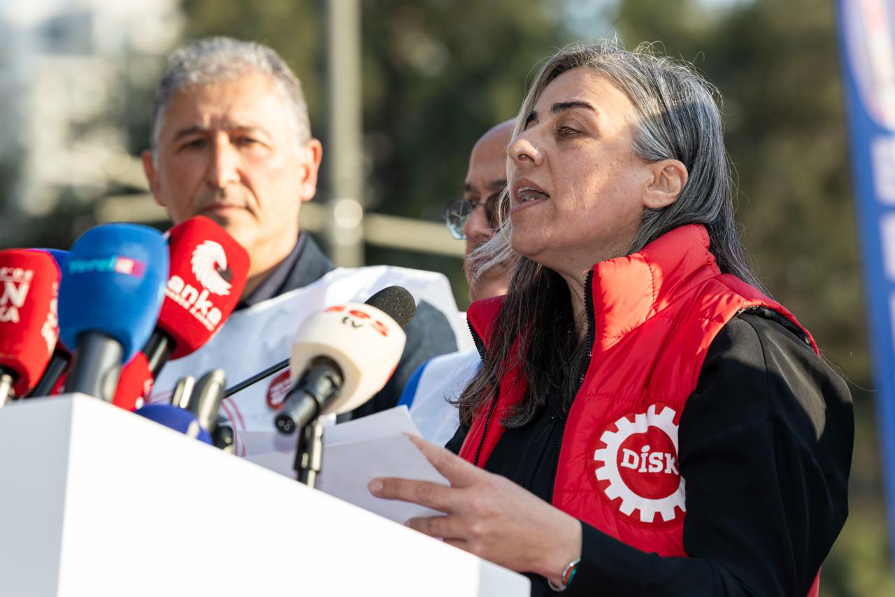 DİSK Ege Bölge Temsilcisi Deniz Şahin Gümüştekin, İzmir Emek ve Demokrasi Güçleri adına yaptığı konuşmasında, “Yalnızca bir binayı değil bu kentin emeğini savunmak için bir aradayız. Meslek Fabrikası İzmir’de yıllardır istihdama doğrudan katkı sunmuş önemli bir sosyal hizmet merkezidir. Örnek bir sosyal belediyecilik örneğidir. Böyle bir tabloda Meslek Fabrikası’na el kondu. Kamu gücü kullanılarak halktan koparılması kabul edilemez. Bu emeği görünmez kılma anlayışının bir parçasıdır. Halkın ortak değerlerine doğrudan müdahaledir. Polis barikatları ve TOMA’lar ile abluka altına alınmıştır. Tıpkı halkın iradesiyle seçilen belediye başkanları gibi… Meslek Fabrikası’na bir şafak baskınıyla el konmuştur. Bu doğrudan halkın iradesine, kamusal haklara yönelik bir saldırıdır. Biz bu kararı tanımıyoruz. Bu karara boyun eğmiyoruz. Bizler biliyoruz ki ateşin kavurduğu an yeniden doğuşun başladığı andır. O ateş bugün İzmir’de yanıyor” ifadelerini kullandı.