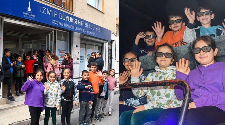 Cumhuriyet’in 100’üncü yılı kutlamaları çerçevesinde kentin 11 farklı noktasındaki Bizİzmir Dayanışma Noktaları’nda gezici sahne ile düzenlenen masal anlatımı, pantomim ve sihirbaz gösterilerinin ardından çocuklar, şimdi de 12D sinema deneyimi yaşıyor. İzleyenlerin ekranda gördüğü hareketleri filmin içindeymiş gibi hissetmesini sağlayan teknoloji ile çocuklar; yapay doğa gezisi yapıyor, çikolata adasını ziyaret ediyor ve safariye çıkıyor.
