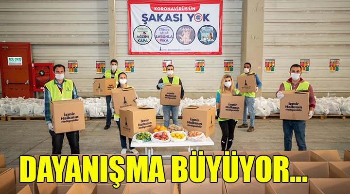 İzmir Büyükşehir Belediyesi kuru gıda kolileri ve kavurmaya ek olarak içinde elma, portakal, limon, soğan ve patates bulunan direnç paketlerinin dağıtımına da başladı. İlk etapta beş bin paket desteklenen ailelere ulaştırılacak. Sebze meyve halinden birinci elden alınan ürünler, üzerinde “İzmir halkının hediyesidir” yazan kolilerle dağıtılacak.